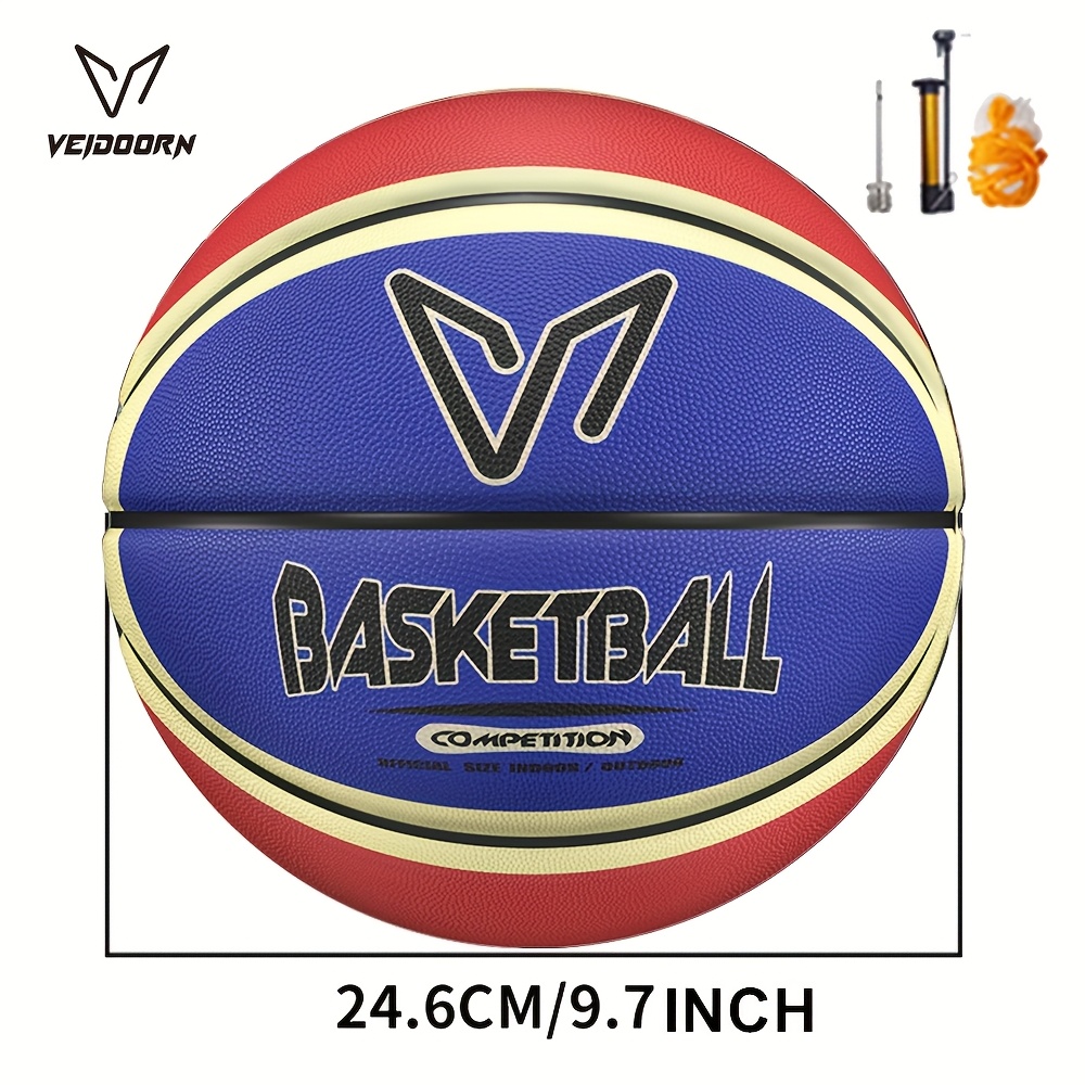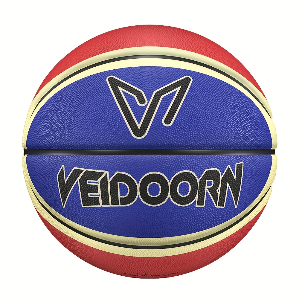 Veidoorn Official Basketball - Durable Rubber Indoor\u002FOutdoor Training & Competition Ball with Black\u002FWhite\u002FRed Accents